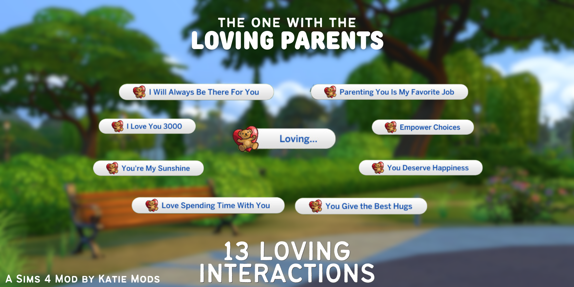 Want to reassure your child that you've got their best interests in mind and that you will be there for them? These interactions are all about helping them out when they are feeling down! Like the others, these interactions will give moodlets to both parent and child, as well as a dialog through the notification pop ups!