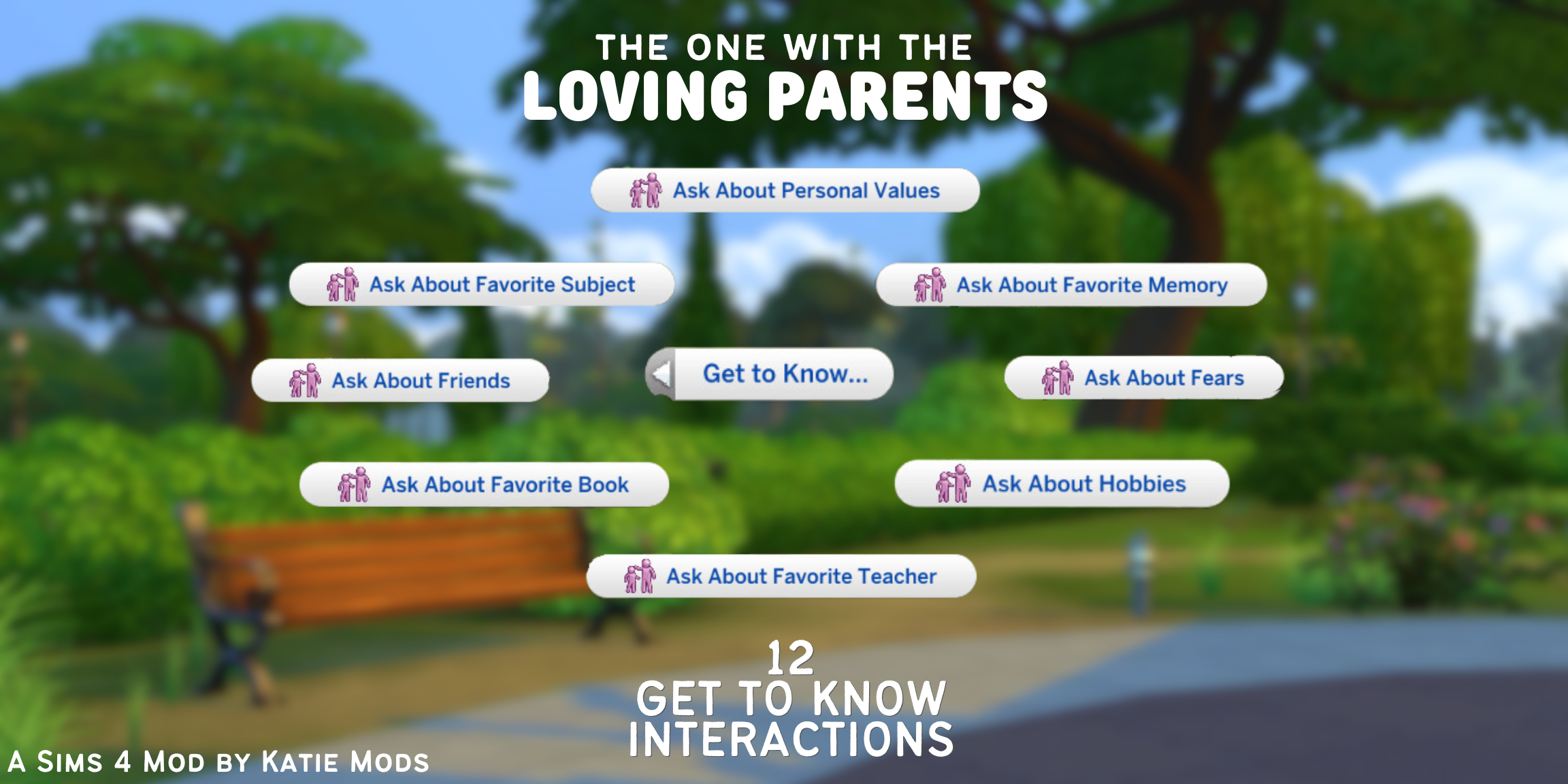 - Interactions are available for Parent sims when talking to their children ages Child-Elder