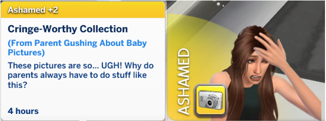 This is similar to compliments from other mods, except the buffs will be more specific to parenting. Here, you will also get the same dialog as with the other interactions in this mod. These are also random with different reactions! Both the Target and Parent get a buff as a results of these as well.